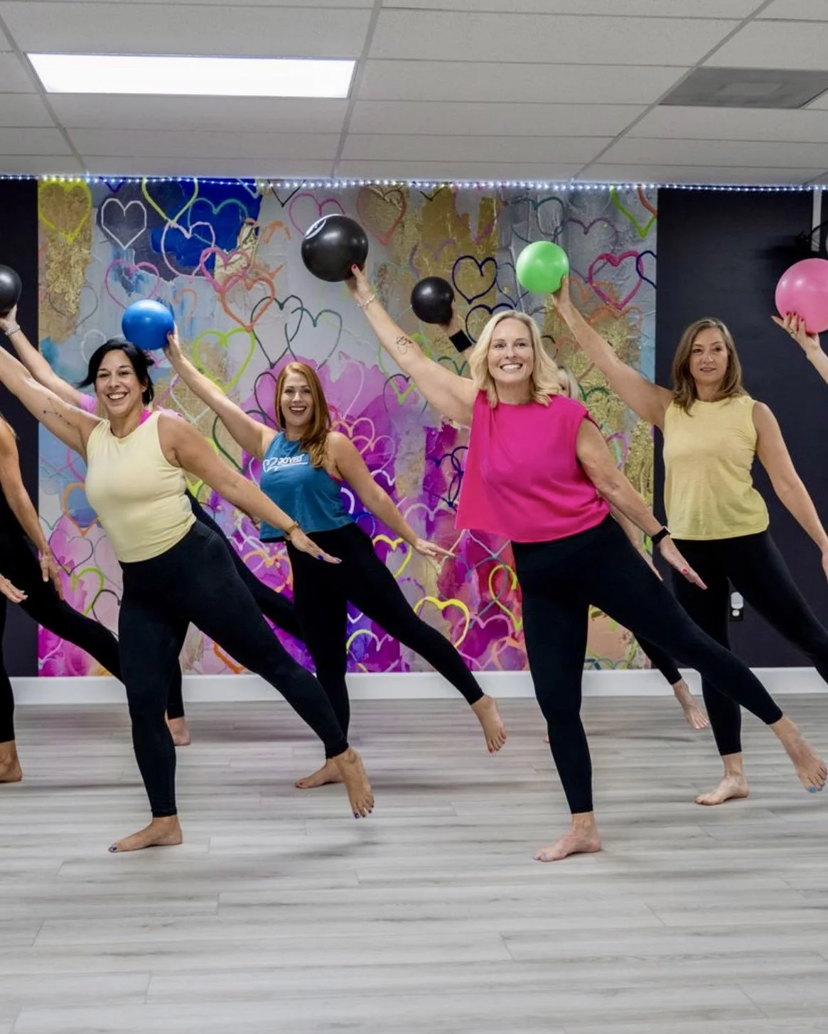 Our barre classes are low impact full body challenging workouts that will keep you going with good music! Barre combines elements of pilates, ballet, yoga, and strength. Barre uses light weights, pilates balls, gliders, and the ballet bar. The small movements and emphasis on form make it a great class for all fitness levels. You will feel the burn for sure and you’ll love it! Grippy socks are required for all barre classes.